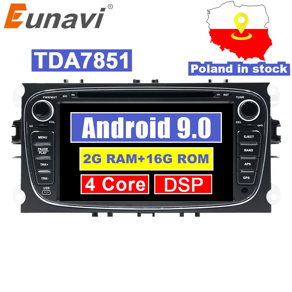 BEST QUALITY Eunavi 2 Din Android 9.0 Car Radio dvd for Ford focus 2 Mondeo S-MAX C-MAX Galaxy Transit Tourneo s