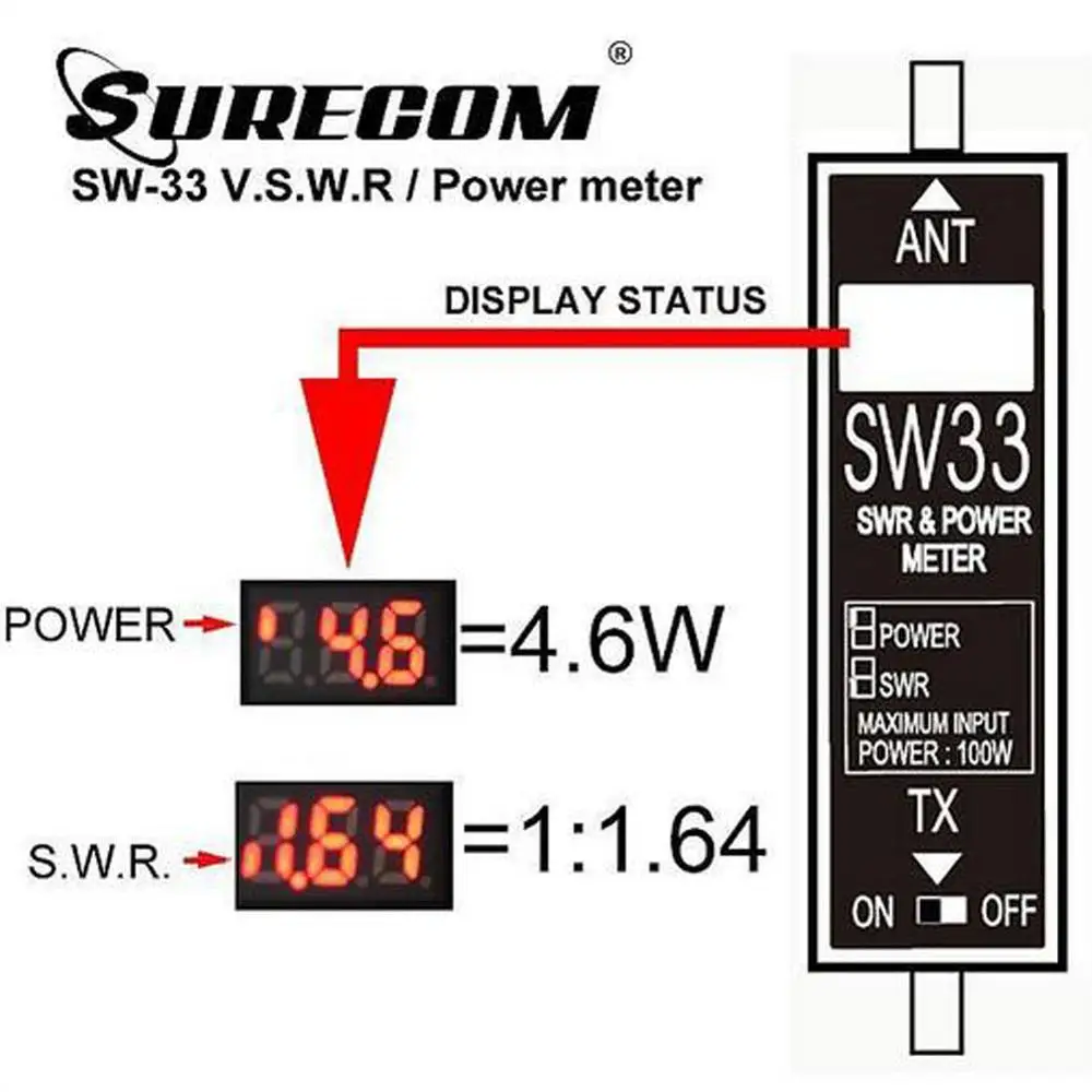 Best Quality SURECOM SW33 Mini Power SWR Meter VHF UHF Portable Tester for Ham Two Way Radio Mini Tester Counter