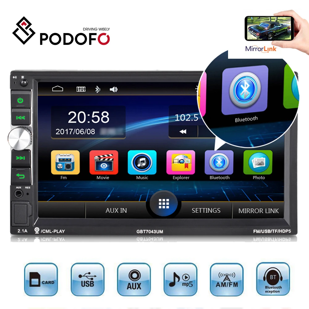 Podofo 2din Car Radio Autoradio 7'' Audio Stereo Multimedia MP5 Player FM Receiver USB Bluetooth Ra