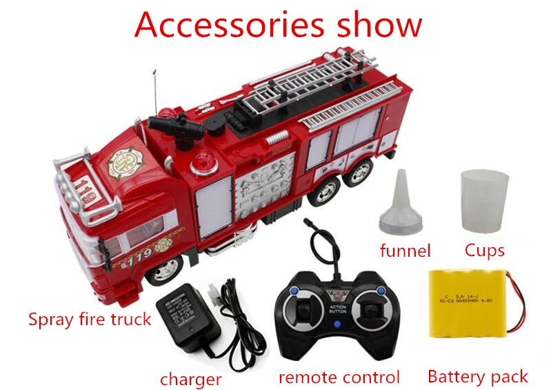 Review 4channel 2.4G radio-controlled car simulation remote control fire engine fire truck with spray func